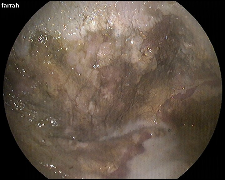 Figure 3: gastric ulceration is a common development following ingestion of blister beetles. A) demonstrates a healthy stomach the upper light colored area and lower pink areas are normal components of the gastric lining in horses, whereas B) reveals the changes that can be seen in association with cantharidin toxicity. The horse in panel B has loss of the normal light colored (squamous) area which has suffered from extensive ulceration. |