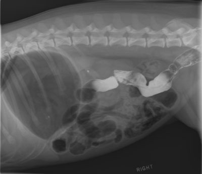 Two day duration of vomiting, diarrhea, and straining to defecate